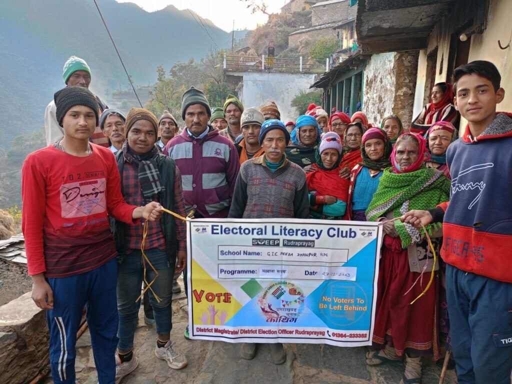 आगामी लोकसभा चुनाव में शत प्रतिशत मतदान के लिए स्वीप के तहत जनपद के स्कूल- कॉलेजों में लगातार जागरूकता अभियान चल रहा है। राजकीय इंटर कॉलेज रुद्रप्रयाग, अगस्त्यमुनि, रतूड़ा, त्रिजुगीनारायण, नारायणकोटी, चोपड़ा, चोपता समेत कई स्कूलों में बूथ लेवल अधिकारी (बीएलओ) मतदान के प्रति छात्रों को जागरूक किया। वहीं स्कूल- कॉलेजों में पोस्टर, निबंध एवं अन्य प्रतियोगिताओं का आयोजन कर छात्र-छात्राओं को खेल- खेल में मतदान के प्रति जागरूक किया जा रहा है। साथ ही पहली बार मतदान करने जा रहे छात्रों को ईवीएम वीवीपैड का प्रदर्शन एवं इस्तेमाल करने की विधि बतायी जा रही है। वहीं नगर पंचायतों एवं ग्रामीण क्षेत्रों में आम जनमानस को ईवीएम वीवीपैड का प्रदर्शन एवं इस्तेमाल करने की विधि बतायी जा रही है। साथ ही मतदाता जागरूकता के लिए जनपद में जागरूकता रथ भी संचालित हो रहे हैं जो गाँव- गाँव जाकर लोगों को मतदान का प्रयोग जरूर करने का आह्वान कर रहे हैं।