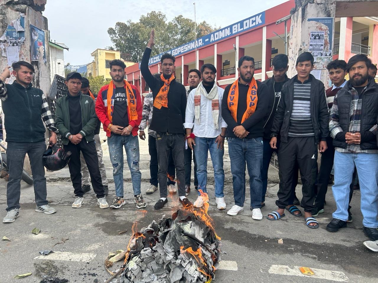 गोपेश्वर (चमोली)। अखिल भारतीय विद्यार्थी परिषद ने मंगलवार को गोपेश्वर महाविद्यालय के गेट पर पश्चिम बंगाल के उत्तर चैबीस परगना जिले के संदेशखाली क्षेत्र में महिलाओं पर हो रहे अत्याचार के विरोध में मुख्यमंत्री ममता बनर्जी का पुतला फूंका तथा जिलाधिकारी के माध्यम से राष्ट्रपति को ज्ञापन भेजकर बंगाल में राष्ट्रपति शासन लगाने की मांग की।
