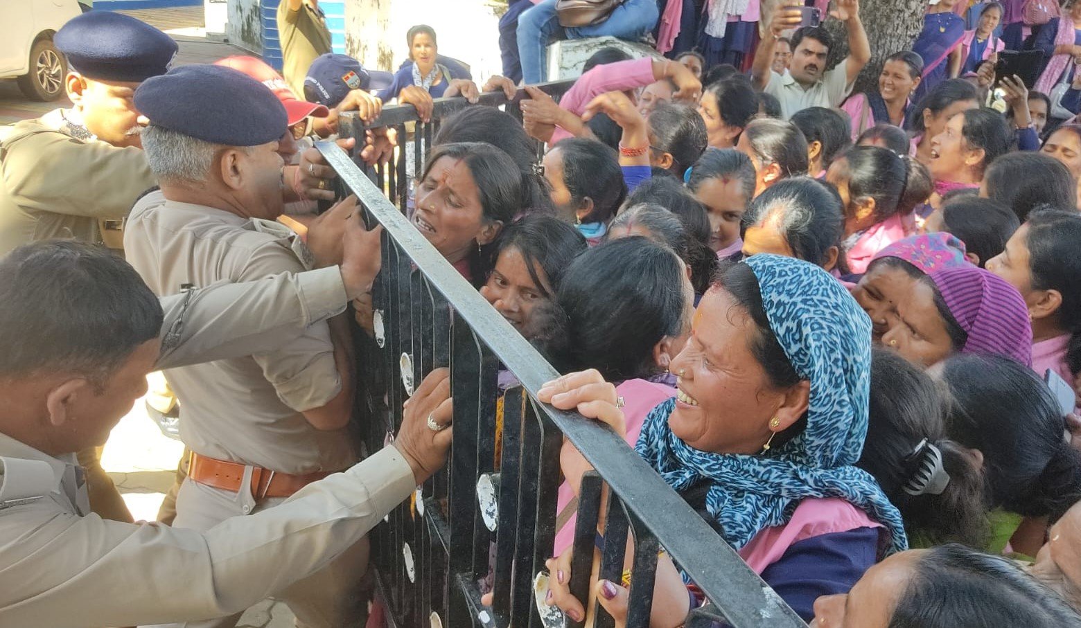 -डीएम कार्यालय तक पहुंचने के लिए आशा कार्यकत्रियों और पुलिस के बीच हुआ संघर्ष, गेट धक्का मारकर परिसर तक जा पहुंची आशाऐं