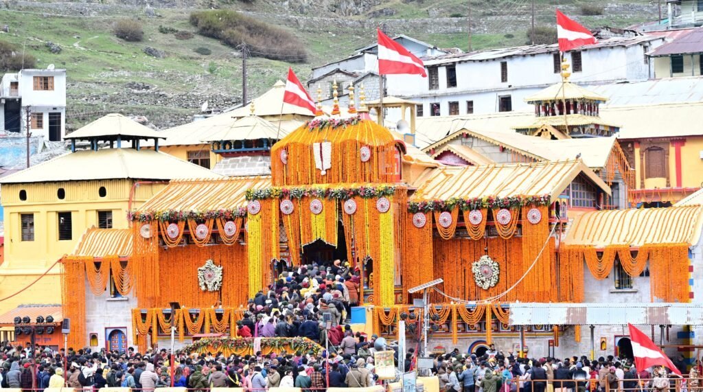 बदरीनाथ धाम के कपाट खुलने के मौके पर श्रद्धालुओं पर की गई पुष्पवर्षा