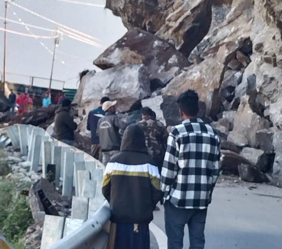 गोपेश्वर (चमोली)। बदरीनाथ हाइवे वे मंगलवार को जोशीमठ से डेढ किलोमीटर पीछे पहाड़ी से भारी बोल्डर आने के कारण अवरूद्ध हो गया है। यहां पर हाइवे के दोनों ओर यात्रियों और स्थानीय लोगों के वाहन फंसे हुए है। हालांकि एनएच की ओर से पहाड़ी से आये बोल्डरो हटाये जाने का कार्य शुरू कर दिया गया है। शीघ्र ही हाइवे को यातायात के लिए सुचारू कर दिया जाएगा। जानकारी देते हुए जिला सूचना अधिकारी कार्यालय ने बताया कि मंगलवार को जोशीमठ के पास पहाड़ी से भारी बोल्डर आने से बदरीनाथ हाइवे बाधित हो गया है। जिसे खोलने का कार्य शुरू कर दिया गया है।