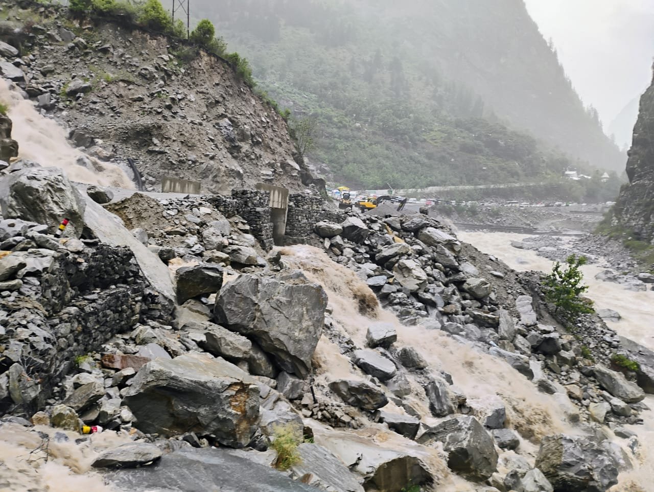 गोपेश्वर (चमोली)। चमोली जिले के बदरीनाथ क्षेत्र में हो रही  वर्षा के कारण बदरीनाथ हाइवे पर लामबगड के पास बह रहा नाला उफान पर आ गया जिससे उसके साथ मलवा आने से हाइवे बाधित हो गया था। चमोली पुलिस ने सुरक्षा की दृष्टि से यात्रियों को पांडुकेश्वर बैरियर के पास ही रोक दिया गया था। लगभग दो घंटे की भारी मसकत के बाद मार्ग खोल दिया गया है।