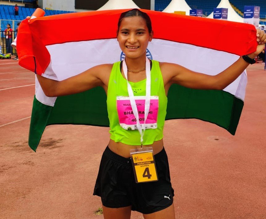 गोपेश्वर (चमोली)। हैदराबाद में रविवार को आयोजित मैराथन दौड़ चमोली जिले के देवाल ब्लाक के दूरस्थ गांव वाण की भागीरथी बिष्ट ने इस दौड़ को दो घंटा 51 मिनट में पूरा कर प्रथम स्थान प्राप्त कर गोल्ड मेडल पर कब्जा किया है। भागीरथी को गोल्ड मेडल के साथ तीन लाख रुपये की धनराशि से पुरस्कृत किया गया है। 23 वर्षीय भागीरथी की इस उपलब्धि पर चमोली जिले समेत देवाल क्षेत्र में भी खुशी का माहौल बना हुआ है।