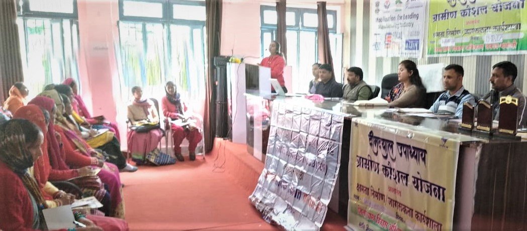 कार्यशाला में बतौर मुख्य अतिथि ब्लाक प्रमुख प्रीति भंडारी ने कहा इस प्रकार की ग्रामीण कौशल योजनाओं की कार्यशाला का आयोजन किया जाना चाहिए। इस प्रशिक्षण से युवाओं को रोजगार के अवसर प्राप्त होंगे। कार्यशाला में पारूल शर्मा, सुरेन्द्र कुमार ने कौशल विकास योजना के अंतर्गत संचालित होने वाले स्वरोजगार के प्रशिक्षण सिलाई कढ़ाई, होटल मैनेजमेंट, माइक्रो फाइनेंस के बारे में जानकारी दी। उन्होंने कहा कि ये सभी प्रकार के प्रशिक्षण युवाओं को निशुल्क दिए जायेंगे ताकि युवा अपना स्वरोजगार चला सके। प्रशिक्षण कार्यशाल में जिसमें ग्राम प्रधान, क्षेत्र पंचायत सदस्य, आजीविका स्वयं सहकारिता समूहों के सदस्य, आंगनबाड़ी कार्यकर्ताओं प्रतिभा किया। इस अवसर पर खंड विकास अधिकारी पन्नालाल, जिला परियोजना प्रबन्धक सुरेन्द्र कुमार, आरबीआई प्रबन्धक रणवीर, पारूल शर्मा, जेष्ठ प्रमुख पूरण सिंह, सहायक खंड विकास अधिकारी कमल आर्य, ब्लाक प्रबन्धक मयंक पंत, ब्लाक कोर्डिनेटर सरिता राणा, विवेक पंत आदि मौजूद थे।