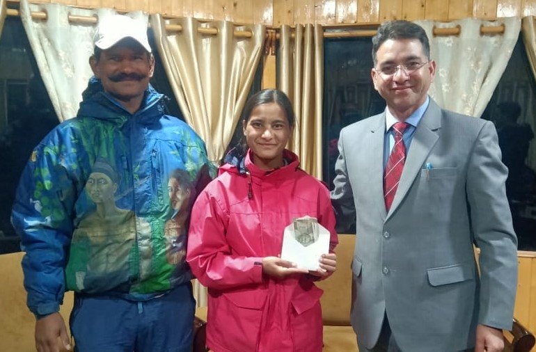 गोपेश्वर (चमोली)। सीमांत जनपद चमोली के देवाल ब्लाक के अतिदूरस्थ गांव वाण की 22 वर्षीय भागीरथी बिष्ट ने जवाहरलाल नेहरू माउंटिनेटिंग इंस्टिट्यूट-विंटर स्कूल और कश्मीर टूरिज्म की ओर से आयोजित 11 किमी की लिडरवेट ट्रेल मैराथन में प्रथम स्थान प्राप्त किया। सिरमौरी चीता और अंतरराष्ट्रीय एथलीट सुनील शर्मा नें बताया की भागीरथी बिष्ट नें सात से नौ हजार फीट की ऊंचाई पर 11 किमी की लिडरवेट ट्रेल दौड एक घंटा 12 मिनट में पूरा किया। इस अवसर पर भागीरथी को नगद धनराशि, प्रशस्ति पत्र और मेडल प्रदान किया गया। गौरतलब है कि फ्लाइंग गर्ल भागीरथी अपनी रफ्तार से दुनिया के फलक पर अपनी चमक बिखेरेने के लिए कडी मेहनत कर रही है। पहाड़ की इस होनहार और प्रतिभाशाली बेटी के सपने पहाड़ से भी ऊंचे हैं।