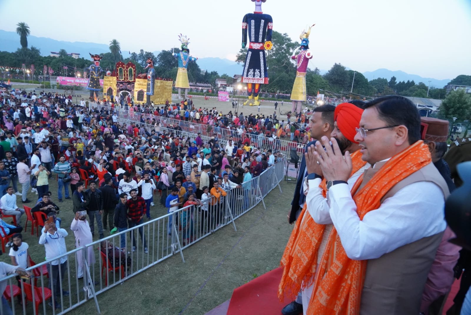 मुख्यमंत्री पुष्कर सिंह धामी मंगलवार को परेड ग्राउण्ड में बन्नू बिरादरी दशहरा कमेटी द्वारा आयोजित दशहरा महोत्सव में शामिल हुए। मुख्यमंत्री द्वारा इस अवसर पर भगवान राम एवं हनुमान जी की पूजा अर्चना के तत्पश्चात् रावण, मेघनाथ और कुम्भकर्ण के पुतलों का दहन किया गया। मुख्यमंत्री ने सभी को विजयदशमी की शुभकामनाएं देते हुए कहा कि दशहरा का पर्व बुराई पर अच्छाई तथा अधर्म पर धर्म की विजय का प्रतीक है। उन्होंने कहा कि वर्षों से हम रावण का दहन करते आ रहे है। रावण अधर्म एवं बुराई का प्रतीक था, इसलिये उसे हर वर्ष जलना होता है। उन्होंने कहा कि यह अवसर हमें समाज में जहां भी बुराई नजर आती है उसे दूर करने का भी सन्देश देता है। अच्छा इंसान बनकर ही हम अच्छे समाज व देश के निर्माण में सहभागी बन सकते हैं। मुख्यमंत्री ने कहा कि विजयादशमी का यह पर्व हमारे समाज के लिये एक सीख और सामाजिक मूल्यों का प्रतिबिंब है। यह पर्व हमारे सामूहिक शक्ति को प्रदर्शित करने, हमारी सामाजिक जिम्मेदारियों के प्रति संवेदनशीलता बढ़ाने, और सामाजिक बुराइयों को दूर करने की दिशा में प्रयास करते रहने की परंपरा को आगे बढ़ाता है।