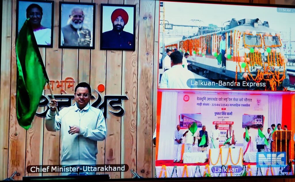 देहरादून। मुख्यमंत्री पुष्कर सिंह धामी सोमवार को वर्चुअल माध्यम से लालकुआं-बांद्रा सुपरफस्ट ट्रेन को हरी झण्डी दिखाकर रवाना किया।मुख्यमंत्री ने कहा कि बाबा कैंची धाम के आशीर्वाद से आज लालकुंआ से बांद्र के मध्य ट्रेन संचालन का स्वप्न पूरा हुआ है। इसके लिए उन्होंने प्रधानमंत्री श्री नरेन्द्र मोदी और रेल मंत्री श्री अश्विनी वैष्णव का आभार व्यक्त किया। इन्होंने कहा कि इस ट्रेन के संचालन से रामपुर, मुदादाबाद, गाजियाबाद, हजरत निजामुदीन, मथुरा, सवाई माधोपुर, कोटा, वडोदरा सूरत जैसे रेलवे स्टेशन से जुड़े लोगों को को यात्रा करने का आसानी से विकल्प मिलेगा।