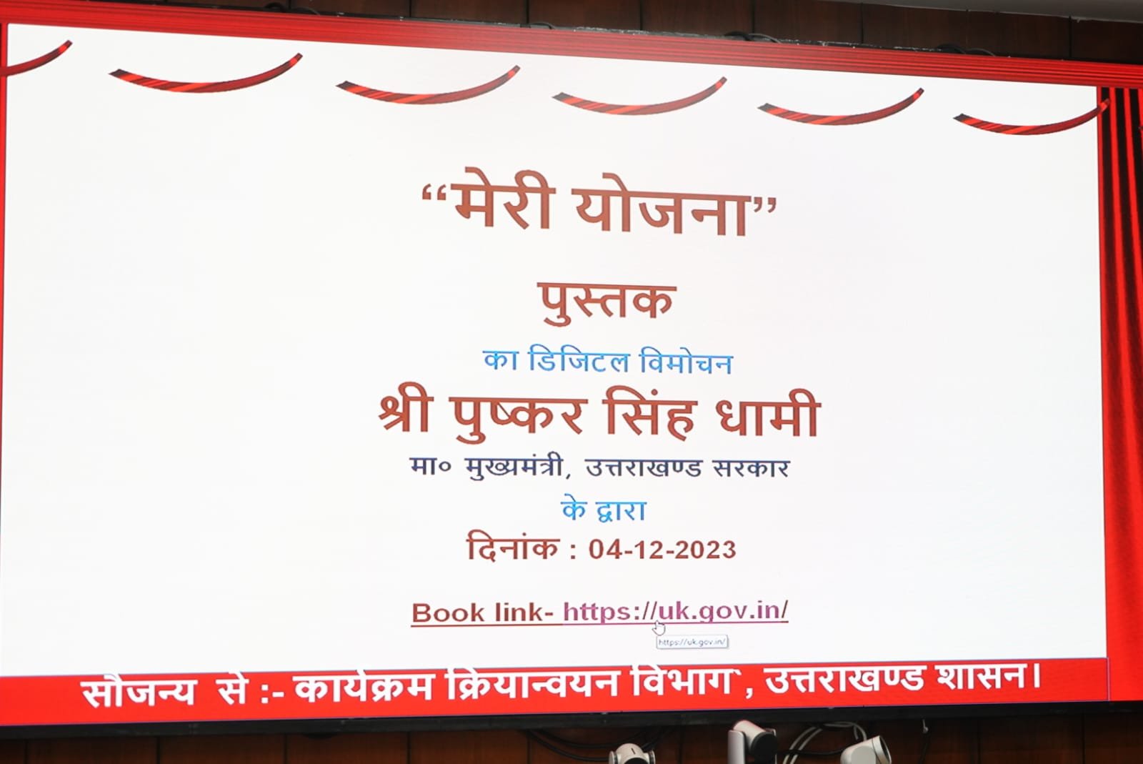 मुख्यमंत्री पुष्कर सिंह धामी ने सोमवार को सचिवालय में कार्यक्रम क्रियान्वयन विभाग,उत्तराखण्ड शासन द्वारा तैयार की गई पुस्तक ‘‘ मेरी योजना’’ का विमोचन ई बुक के रूप में किया।