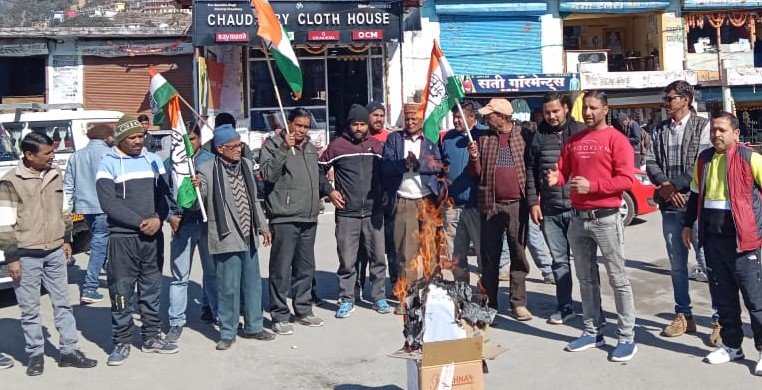कांग्रेस पार्टी के ब्लाक अध्यक्ष सन्तोष चौधरी के नेतृत्व में प्रदेश की धामी सरकार के खिलाफ जमकर नारेबाजी की और इसे लोकतंत्र की हत्या बताकर  गोल मार्केट पोखरी में प्रदेश  सरकार का पुतला दहन किया। ब्लॉक अध्यक्ष ने कहा कि प्रदेश की धामी सरकार लोक तंत्र की हत्या कर महिलाओं का अपमान कर रही है। चमोली की जिला पंचायत अध्यक्ष रजनी भंडारी को वेवजह पद से हटाया जाना महिलाओं का अपमान है। जिसे कांग्रेस  पार्टी बर्दाश्त नहीं करेगी। उन्होंने कहा कि भाजपा कांग्रेस पार्टी की बढ़ती लोकप्रियता से बौखला गयी है। उन्होंने कहा कि प्रदेश सरकार अपना निर्णय वापस ले और रजनी भंडारी को जिला पंचायत चमोली के अध्यक्ष पद पर दोबारा बहाल करे। इस अवसर पर कांग्रेस के ब्लाक अध्यक्ष सन्तोष चौधरी, नगर अध्यक्ष सत्येन्द्र कंडारी, सुखदेव लाल, हनुमंत कंडारी, कांग्रेस युवा मोर्चे के जिला सचिव मयंक नेगी, बीरेंद्र भंडारी, कुंवर सिंह चौधरी, ओम प्रकाश चौधरी, राकेश भट्ट, मुकेश बिष्ट, नत्था सिंह नेगी, देवेन्द्र चौधरी, मिंटू कोठियाल, संतू नेगी, दिगम्बर बर्त्वाल, धर्मेन्द्र कंडारी, मधुसूदन चौधरी आदि मौजूद थे।