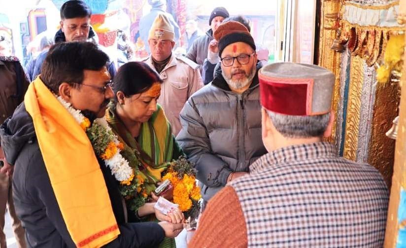 गोपेश्वर (चमोली)। उत्तराखंड के मुख्य सचिव आनंद बर्द्धन ने सपत्नीक भगवान बदरीविशाल के दर्शनों का पुण्य लाभ अर्जित कर खुशहाली की मनौती मांगी। मुख्य सचिव आनंद बर्द्धन सपत्नीक बदरीनाथ धाम पहुंचे। इस दौरान हेलीपैड पर जिलाधिकारी गौरव कुमार तथा पुलिस अधीक्षक सर्वेश पंवार ने पुष्पगुच्छ भेंट कर उनकी आगवानी की। इस दौरान मुख्य सचिव को पुलिस द्वारा गॉर्ड ऑफ़ ऑनर प्रदान किया गया। हेलीपैड से सीएस बदरीनाथ मंदिर पहुंचे। बदरीनाथ मंदिर में उन्होंने भगवान बदरीविशाल के दर्शन कर पूजा अर्चना की। इस अवसर पर उन्होंने प्रदेशवासियों की सुख समृद्धि की कामना की। पूजा अर्चना के बाद सिंहद्वार पर पहुंचे सीएस बदरीनाथ धाम की अदभुत छटा देख अभिभूत हो उठे। इस दौरान सीएस काफी प्रसन्न नजर आ रहे थे।