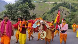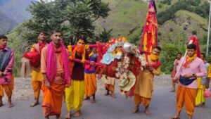 जोशीमठ(चमोली)। नागपुर पट्टी के पोखरी विकास खण्ड के कुमेड़ा गांव की आराध्य देवी मां राजराजेश्वरी इंद्रामती की विग्रह डोली अपनी बद्रीनाथ यात्रा के पांचवे पड़ाव पर आज पैदल चलकर जोशीमठ पहुंची।