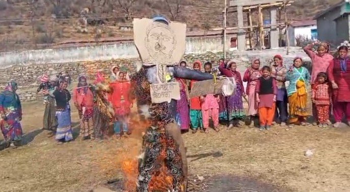 गोपेश्वर (चमोली)। चमोली जिले के जोशीमठ विकास खंड के उर्गम घाटी के डुमक गांव को सड़क से जोड़ने की मांग को लेकर ग्रामीणों का डुमक गांव में धरना मंगलवार को 21वें दिन भी जारी रहा। ग्रामीण महिलाओं के साथ ही बुजुर्गों ने मंगलवार को क्षेत्रीय विधायक राजेंद्र िंसह भंडारी का पुतला दहन कर अपना रोष प्रकट किया, वहीं सड़क की मांग को लेकर हल्ला बोल पदयात्रा कर रहे गांव के युवा 16वें दिन देवर गांव पहुंच गये हैं। जहां पर ग्रामीणों ने उनका स्वागत किया तथा उनकी मांग का समर्थन करते हुए 18 को जिला मुख्यालय गोपेश्वर में आयोजित प्रदर्शन में भागेदारी करने की बात कही।
