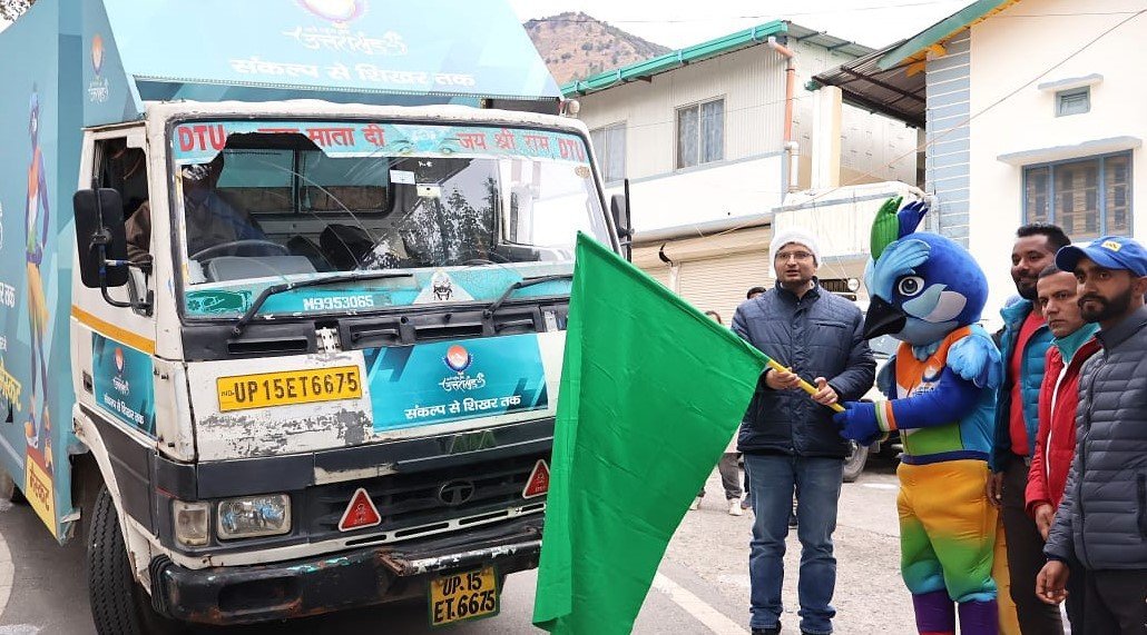 गोपेश्वर (चमोली)। 38वें राष्ट्रीय खेलों के आयोजन के शुभंकर, लोगो, जर्सी और टैगलाइन आदि का कैन्टर के माध्यम से व्यापक प्रचार-प्रसार के लिए चमोली जिले में जिलाधिकारी संदीप तिवारी की ओर से सोमवार को प्रमोशनल वेन का जिला कार्यालय गोपेश्वर चमोली से हरी झण्डी दिखाकर शुभारम्भ किया गया। राष्ट्रीय खेलों का शुभंकर मस्कट मौली प्रचार वाहन में सवार होकर छह से आठ जनवरी तक जिले में सभी ब्लाक, प्रमुख शहर एवं दूरस्थ ग्रामीण क्षेत्रों में घूम कर लोगों को राष्ट्रीय खेलों से जुड़ने के लिए प्रेरित करेगा।