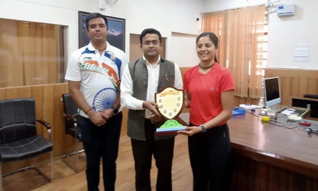 गोपेश्वर (चमोली)। राष्ट्रीय खेल दिवस के अवसर जिलाधिकारी हिमांशु खुराना ने सोमवार को जिला कार्यालय में जनपद के अंतराष्ट्रीय खिलाड़ी मनीष रावत और मानसी नेगी को स्मृति चिन्ह एवं शॉल भेंट कर सम्मानित किया। जिलाधिकारी ने दोनों खिलाडियों को आने वाले खेल प्रतियोगिताओं के लिए शुभकामनाएं भी दी। इस दौरान जिलाधिकारी ने जनपद में खेलकूद गतिविधियों को विकसित करने के लिए दोनों खिलाडियों के सुझाव भी लिए। इससे पूर्व दोनों खिलाड़ियों की ओर से स्पोर्ट्स स्टेडियम में मेजर ध्यानचंद के जन्मदिन राष्ट्रीय खेल दिवस पर आयोजित तीन दिवसीय जिला खेल कूद प्रतियोगिता का शुभारंभ किया गया और क्रॉसकंट्री दौड़ के विजेताओं को पुरस्कृत किया गया।