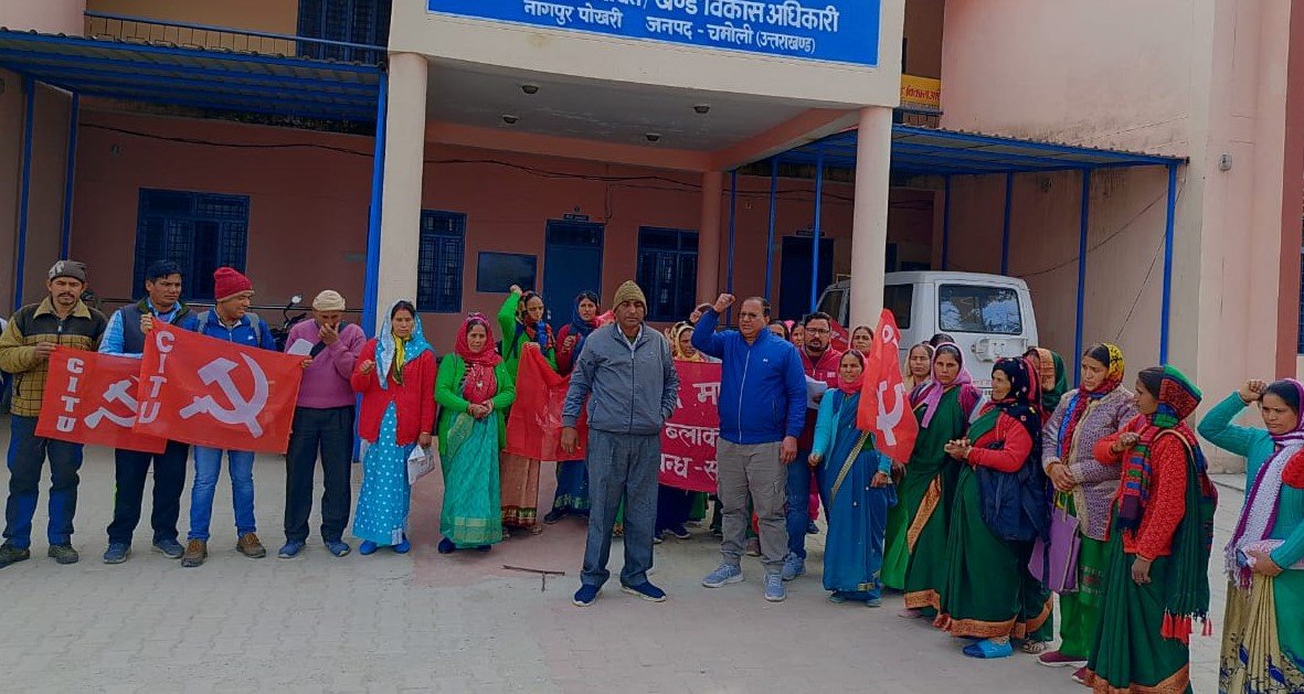 पोखरी (चमोली)। चमोली जिले के पोखरी ब्लाक में शनिवार को कामगार यूनियन सीटू के बैनर तले भोजन माताओं और फिटरों ने वेतन बढ़ोतरी सहित विभिन्न मांगों को लेकर विरोध प्रदर्शन किया।