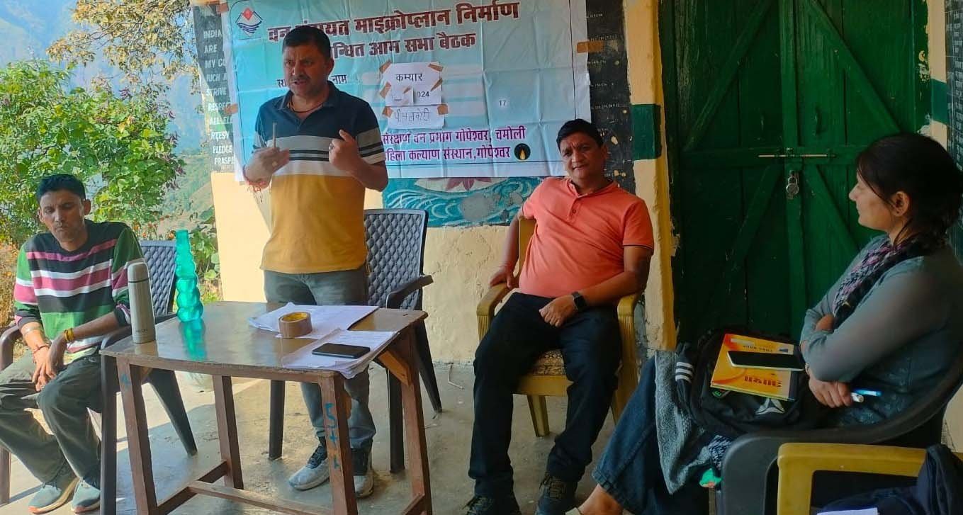 कम्यार गांव में आयोजित बैठक में संस्था के सचिव महानंद बिष्ट ने कहा कि अब सरकार वन पंचायतों को मजबूती के लिए गांव के लोगों के साथ बैठ कर माइक्रोप्लान तैयार कर रही है। इस माइक्रोप्लान के आधार पर ग्रामीणों के साथ हुई चर्चा परिचर्चा में उभरे हुए कार्यो को प्राथमिकता प्रदान की जायेगी। अन्य कार्यों को प्लान में रखकर विभागों से कार्यो के बारे में बताया जा सकेगा। संस्था की समन्यवक पायल बिष्ट ने कहा कि गांवों में वन पंचायते तो गठित हैं लेंकिन इन वन पंचयतों के माध्यम से कोई कार्य नही हो पा रहे थे। इसलिए वन पंचायतें सक्रिय नही हो पा रही थी। इस लिए अब माइक्रोप्लान के आधार योजनाऐं बना कर वन पंचायत के माध्यम से कार्य करवाये जा सकेंगे। उन्होनें कहा कि माइक्रोप्लान को तैयार करने में ग्रामीणों की अहम भूमिका है। इसलिए ग्रामीणों की भागीदारी होनी जरूरी है। ईशा बिष्ट ने कहा कि विभाग की गाइड लाइन के आधार पर ही ग्रामीणों के कार्यो को प्राथमिकता प्रदान की जा रही है। सरपंच प्रदीप सिंह रावत ने कहा कि ग्रामीणों के साथ बैठकर उनकी मांगों के आधार पर किये जाने वाले कार्य सार्थक होगें। उन्होंने कहा कि वन पंचायत की ओर से पूरा सहयोग प्रदान किया जायेगा। वन आरक्षी अरविंद फरस्वाण ने कहा कि वनों की रक्षा के लिये ग्रामीणों को सबसे अधिक सहयोग की जरूरत है। इसलिये प्लान में वनों की आग से सुरक्षा के क्षेत्र में कार्य होने चाहिये। इस मौके पर लक्ष्मी प्रसाद, दिलवर सिंह, देवेन्द्र सिंह, सौरभ सिंह, सुरेन्द्र सिंह, मंगसीरी देवी आनंदी देवी, हरी नेगी आदि मौजूद थे।