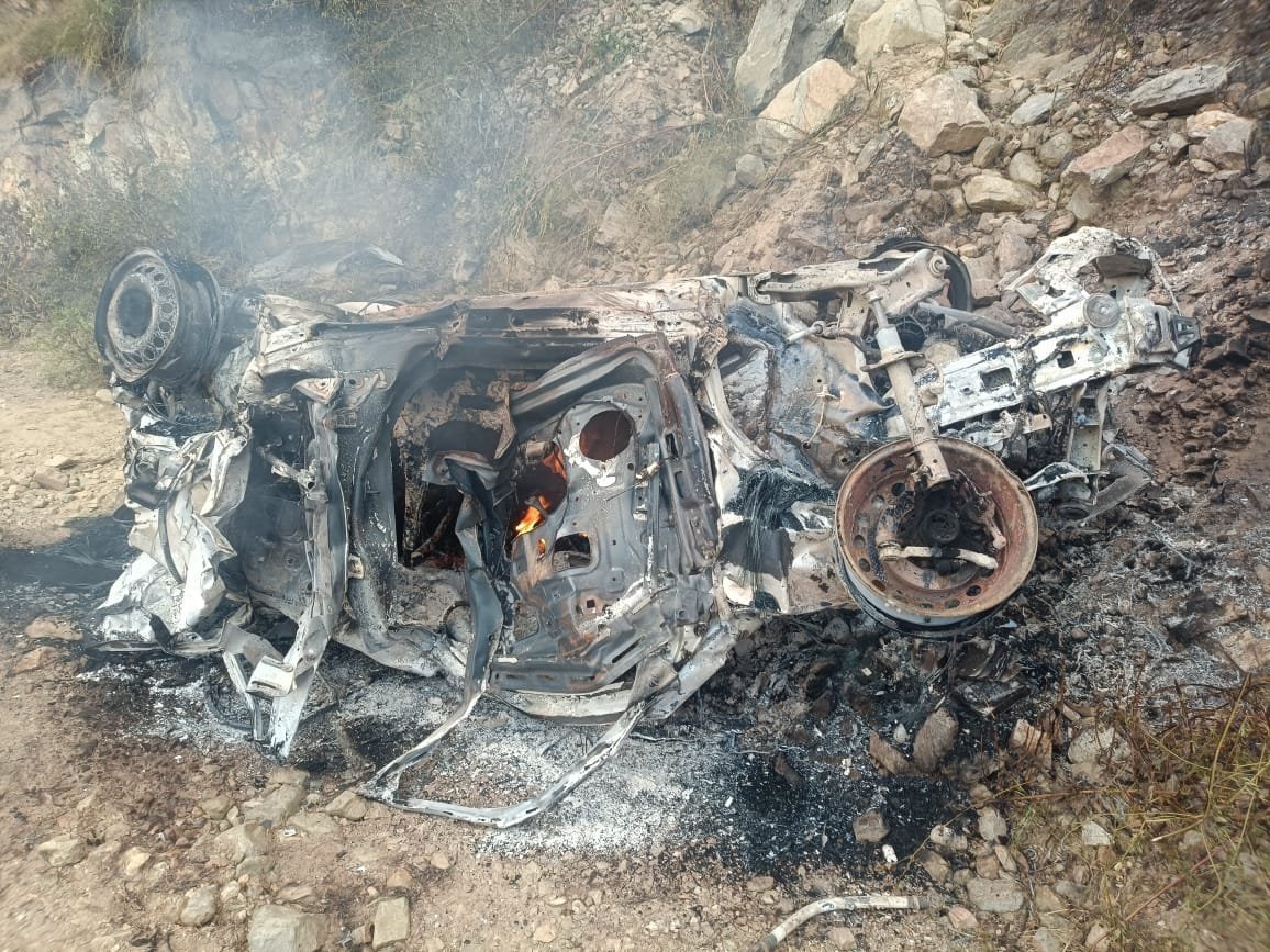 दुर्घटना पर कार बनी आग का गोला, जल कर स्वाहा