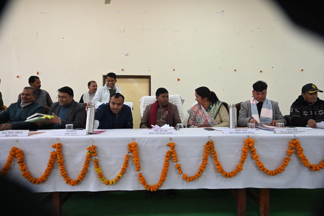 बैठक में ज्येष्ठ प्रमुख राजेंद्र गुसाईं, कनिष्ठ प्रमुख चंद्र मोहन नोटियाल, डीडीओ सुनील कुमार, प्रधान संगठन अध्यक्ष दिनेश भजनियाल, एसीएमओ एल.डी.सेमवाल, सीएओ अभिलाषा भट्ट, डीपीओ शोहेब हुसैन, डीपीआरओ एम.एम. खान, आबकारी अधिकारी कैलाश बेन्जोला, मत्स्य अधिकारी गरीमा मिश्रा, एआरटीओ सतेन्द्र राज, डीएचओ आर.एस. वर्मा, समाज कल्याण अधिकारी के.एस चौहान, उरेड़ा अधिकारी एम.एम. डिमरी, डेयरी विकास प्रेमलाल, अधिशासी अभियन्ता पुनर्वास धीरेन्द्र सिंह सहित अधिशासी अभियन्ता लोनिवि, पीएमजीएसवाई, सिंचाई एवं अन्य जिला स्तरीय अधिकारी उपस्थित रहे।
