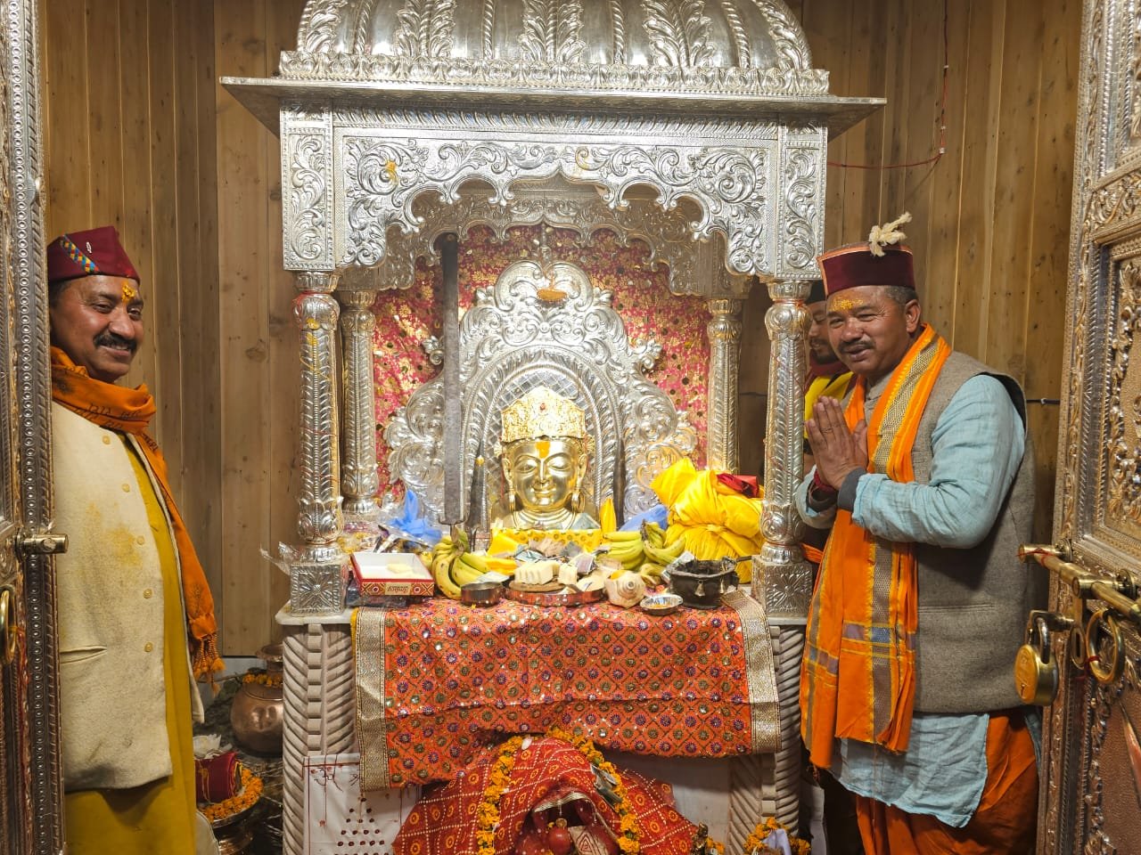 गोपेश्वर (चमोली)। यात्राकाल में भगवान श्री बदरीश पंचायत में विराजित देवताओं के खजांची कुबेर के शीतकालीन प्रवास पांडुकेश्वर स्थित नव निर्मित मंदिर की प्राण प्रतिष्ठा का तीन दिवसीय कार्यक्रम मकर सक्रांति के पर्व में महाविद्यापाठ पूर्णाहुति, हवन, यज्ञ, पूजा-अर्चना के साथ समापन हो गया तथा देवताओं के खजांची भगवान कुबेर अपने नये मंदिर में स्थापित चांदी के सिंहासन में विराजमान हो गये। इस अवसर श्रद्धालुओं ने भगवान कुबेर तथा योग बदरी मंदिर तथा उद्धव के दर्शन किये।