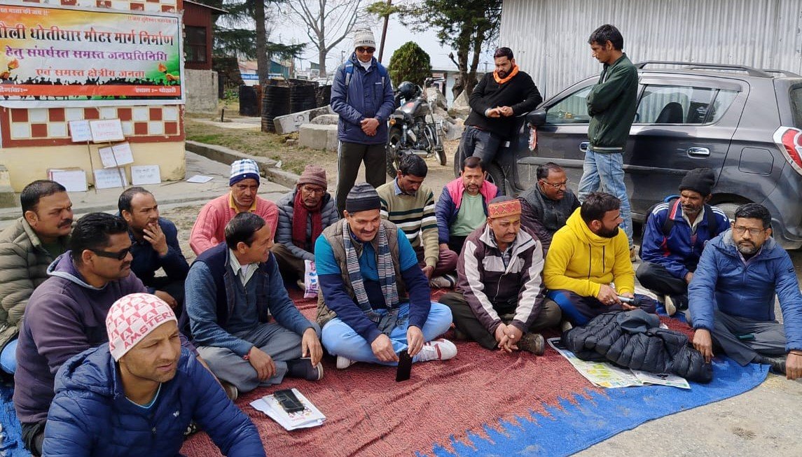 जनप्रतिनिधियों के साथ धरने देते हुए कांग्रेस के विधायक राजेंद्र भंडारी ने कहा धोतीधार मोटर मार्ग की फाइल शासन स्तर पर है मुख्यमंत्री के अनुमोदन होने के बाद शासनादेश जारी होगा, कब होगा यह वे बता नही सकते हैं। उन्होंने कहा धोतीधार मोटर मार्ग क्षेत्र के विकास के लिए अति आवश्यक है। यह पहले से क्षेत्र की मांग रही है।