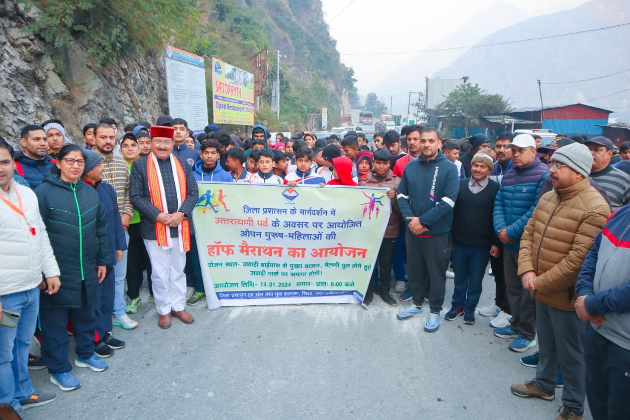 रुद्रप्रयाग। उत्तरायणी पर्व के पावन अवसर पर रविवार को जिलाधिकारी सौरभ गहरवार के निर्देशन में खेल विभाग, युवा कल्याण, शिक्षा विभाग एवं नगर पालिका के संयुक्त तत्वाधान मेें जवाड़ी बाईपास से बालक एवं बालिका वर्ग में आठ किलोमीटर हाफ मैराथन दौड़ का आयोजन किया गया। जिसे विधायक रूद्रप्रयाग भरत सिंह चैधरी एवं जिलाधिकारी ने हरी झंडी दिखाकर रवाना किया। दौड़ बाईपास से गुलाबराय, मुख्य बाजार, बेलनी पुल, संगम से होते हुए जवाड़ी स्थित पर्यटन विभाग के पार्क पर समाप्त हुई। बालक वर्ग में सचिन ने 28 मिनट 03 सेकंड में बालिका वर्ग में निकिता कनवाल ने 33 मिनट 52 सेकंड में दौड़ पूरी कर प्रथम स्थान हासिल किया।