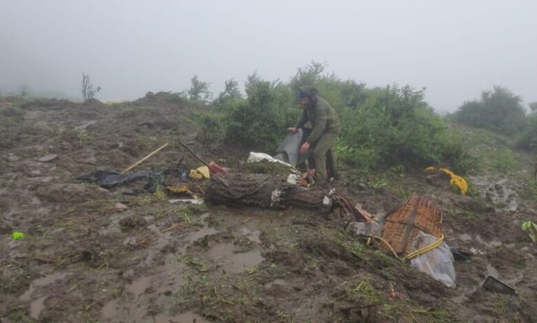 रुद्रप्रयाग। जिला आपदा प्रबंधन अधिकारी नंदन सिंह रजवार ने बताया कि लिंचोली क्षेत्र अंतर्गत प्रातः अतिवृष्टि होने के कारण खाली कैंप से पहाड़ी की तरफ गदेरे में नेपाली बसावट में मलबा आने से कपिल बहादुर पुत्र कालू बहादुर उम्र 27 वर्ष सुखद कैलाली आंचल शेती नेपाल की मलबे में दबने की सूचना हरीश बहादुर पुत्र कर्ण बहादुर ग्राम सुखड, जिला कैलाली, आंचल सेती,(ससुर) ने दी जिस पर समयक पुलिस बल के साथ रेस्क्यू टीम द्बारा मौके से उपरोक्त व्यक्ति को ढूंढा गया जो मृत अवस्था में मलबे में दबा पाया गया जो अपने बच्चों और पत्नी के साथ अस्थाई टेंट में सो रखा था। बाकी सभी परिजन सुरक्षित किए गए, मृतक को उसके परिजनों के समक्ष आवश्यक कार्रवाई हेतु थाना सोनप्रयाग लाया गया है।