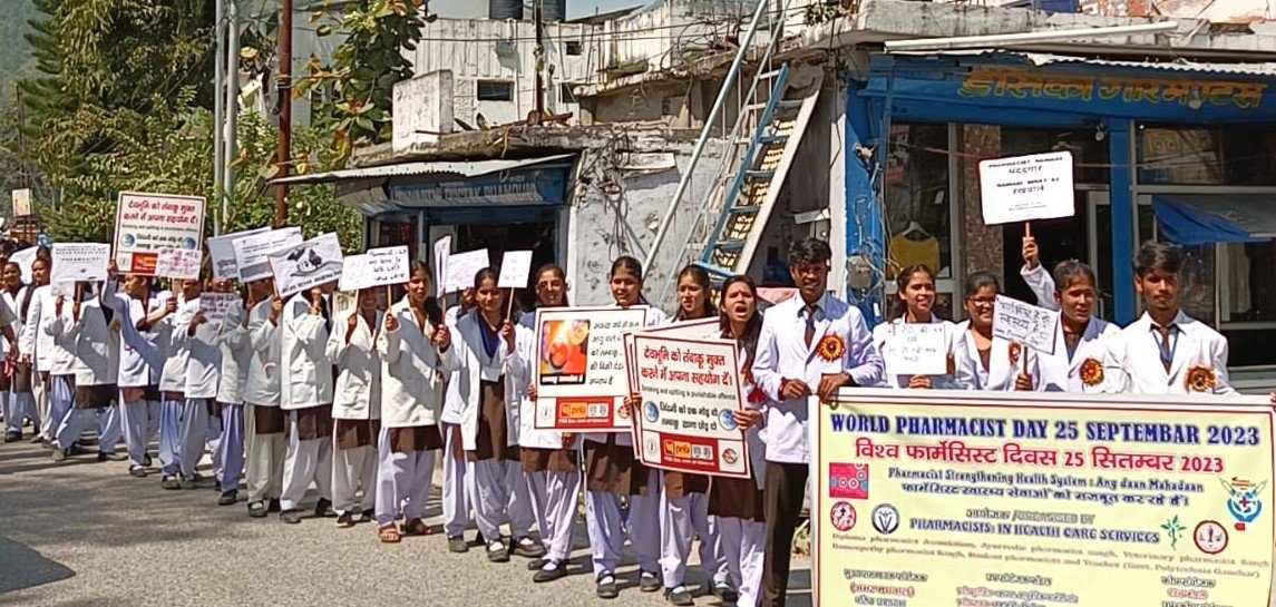 गौचर (चमोली)। चमोली जिले के गौचर के नगर पालिका सभागार में सोमवार को फार्मासिस्ट दिवस पर रैली निकाल कर विचार गोष्ठी का आयोजन किया गया। जिसमें एलोपैथिक फार्मासिस्ट, वेटिनरी फार्मासिस्ट, आयुर्वेदिक फार्मासिस्ट और होम्योपैथिक फार्मासिस्ट ने प्रतिभाग किया। इस वर्ष की अंतर्राष्ट्रीय फार्मासिस्ट दिवस की थीम “फार्मेसी स्वास्थ्य प्रणालियों को मजबूत कर रही है” पर अपने विचार रखे।