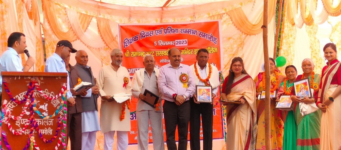 चमोली जिला मुख्यालय गोपेश्वर के रामचन्द्र भट्ट सरस्वती विद्या मन्दिर इण्टर कॉलेज में शिक्षक दिवस पर रंगारंग सांस्कृतिक कार्यक्रम आयोजित किये गये। इस मौके पर मुख्य अतिथि मुख्य विकास अधिकारी डा. ललित नारायण मिश्र ने कहा कि शिक्षक समाज का निर्माता है। शिक्षक की समाज को सही दिशा दे सकता है। इस मौके पर मैधावी छात्रों के साथ ही शिक्षकों को भी सम्मानित किया गया।