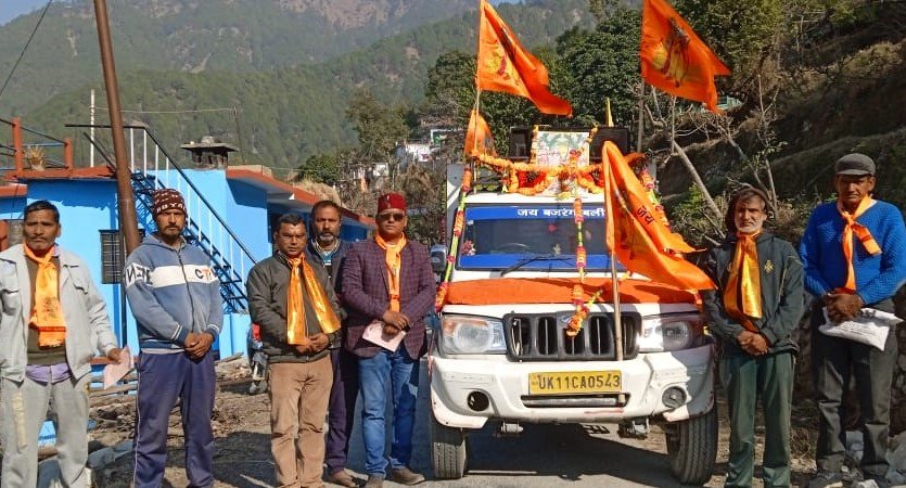 पोखरी (चमोली)। चमोली जिले के पोखरी विकास खंड के ग्राम पंचायत क्वीठी, काण्डा, रानो, बमोथ, सूगी, करछूना, सलमोला, खाल में मंगलवार को अयोध्या से आए पूजित अक्षत कलश की यात्रा निकाली गई। इस दौरान चारों ओर राम के नाम से गुंजायमान रहा जगह-जगह गांवों में ग्रामीणों ने राम सेवकों को फूलमालाओं से स्वागत किया।