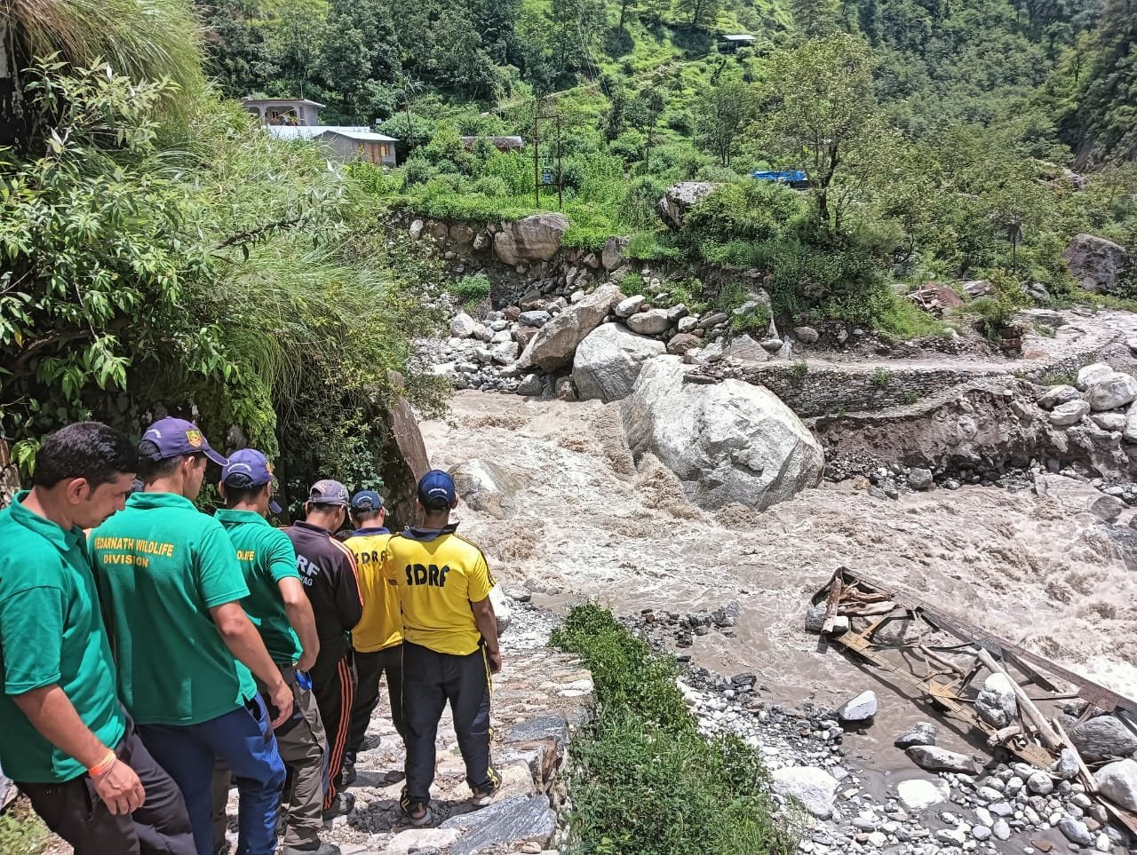 रुद्रप्रयाग। जिला आपदा प्रबंधन अधिकारी नंदन सिंह रजवार ने अवगत कराया है कि देर रात्रि को हुई भारी बारिश के कारण मदमहेश्वर मंदिर ट्रैक पर बनतोली गौंडार में मार्कण्डेय (मोरकंडा) नदी पर पैदल पुल बह जाने के कारण क्षेत्र से संपर्क बाधित हो गया था। उन्होंने अवगत कराया कि सूचना प्राप्त होते ही जिलाधिकारी सौरभ गहरवार के निर्देशन में एसडीआरएफ, डीडीआरएफ, पुलिस तथा जिला प्रशासन के अधिकारी एवं कर्मचारी घटना स्थल के लिए रवाना हुए। पूरे रेस्क्यू अभियान के दौरान जिलाधिकारी भी स्वयं मौके पर मौजूद रहे। जिलाधिकारी की निगरानी में हैली सेवाओं के माध्यम से मदमहेश्वर यात्रा रूट पर फंसे 106 यात्रियों का सफल रेस्क्यू किया गया।