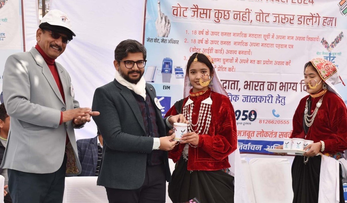 कार्यक्रम में नोडल स्वीप ने 14 वें राष्ट्रीय मतदाता दिवस के अवसर पर जनमानस और स्कूली बच्चों को मतदान की शपथ दिलायी। और वोट देण आवा, सैयां अब न रावा। गढ़वाली गाने का विमोचन किया। साथ ही उन्होंने व्हाइट बोर्ड पर हस्ताक्षर कर मतदाता जागरूकता अभियान का शुभारम्भ किया। इस दौरान उन्होंने स्वीप कार्यक्रम के तहत विद्यालय स्तर पर आयोजित स्लोगन एवं पेंटिंग प्रतियोगिताओं में प्रथम स्थान प्राप्त करने वाले प्रतिभागियों को पुरस्कृत किया और बुर्जुग एवं दिव्यांग मतदाताओं को शॉल ओढ़ाकर सम्मानित किया गया। स्वीप के समन्वयक कुलदीप गैरोला ने मुख्य विकास अधिकारी अभिनव शाह का बैच अलंकरण एवं शॉल ओढ़ाकर सम्मानित किया।