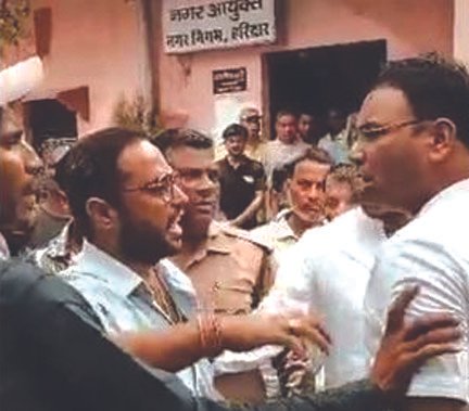 हरिद्वार। लंबित पड़े वेतन के भुगतान को लेकर मंगलवार को हरिद्वार नगर निगम में बवाल हो गया। नगर आयुक्त से वार्ता करने पहुंचे सफाई कर्मियों व पार्षद प्रतिनिधि के साथ सुरक्षाकर्मी ने धक्का-मुक्की कर दी। जिससे सफाईकर्मी भड़क गए। गुस्साए सफाई कर्मियों ने नगर आयुक्त का घेराव करते हुए नारेबाजी शुरू कर दी। माहौल बिगड़ता देख नगर आयुक्त कार्यालय को छोड़कर भाग खड़े हुए।