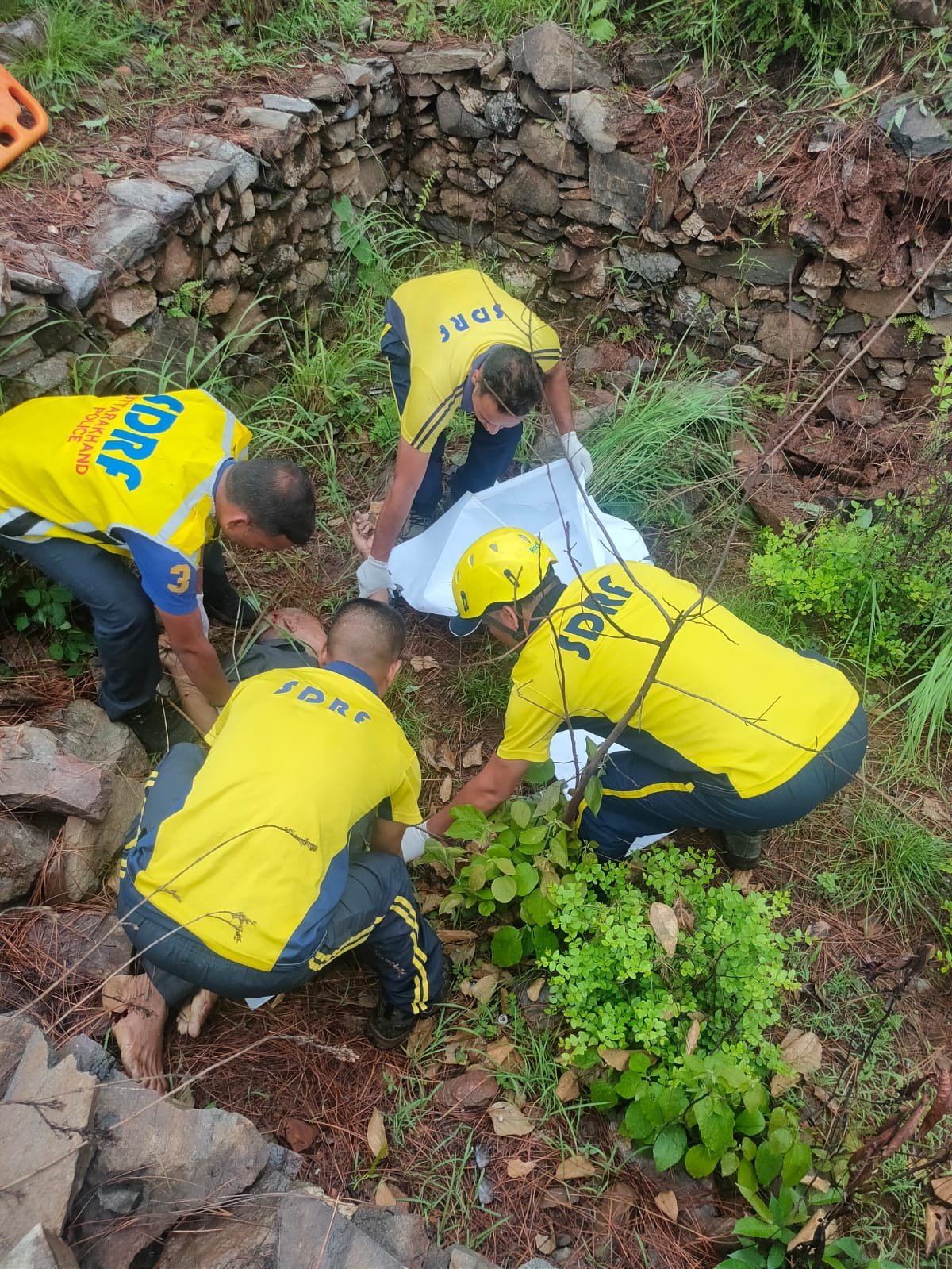 एसडीआरएफ टीम द्वारा घटनास्थल पर पहुंचकर त्वरित कार्यवाही करते हुए रोप द्वारा लगभग 200 मीटर नीचे गहरी खाई में उतरकर उक्त वाहन तक पहुंच बनाई जिसमें 05 लोग सवार थे जिनमें से 02 लोगों की मौके पर मृत्यु हो चुकी थी व बाकी 03 घायल लोगों को स्ट्रेचर द्वारा खाई से बाहर निकाल कर उचित उपचार है तो एंबुलेंस द्वारा अस्पताल भिजवाया गया व बाकी 02 लोगों के शवो को खाई से बाहर निकाल कर जिला पुलिस के सुपुर्द किया गया।