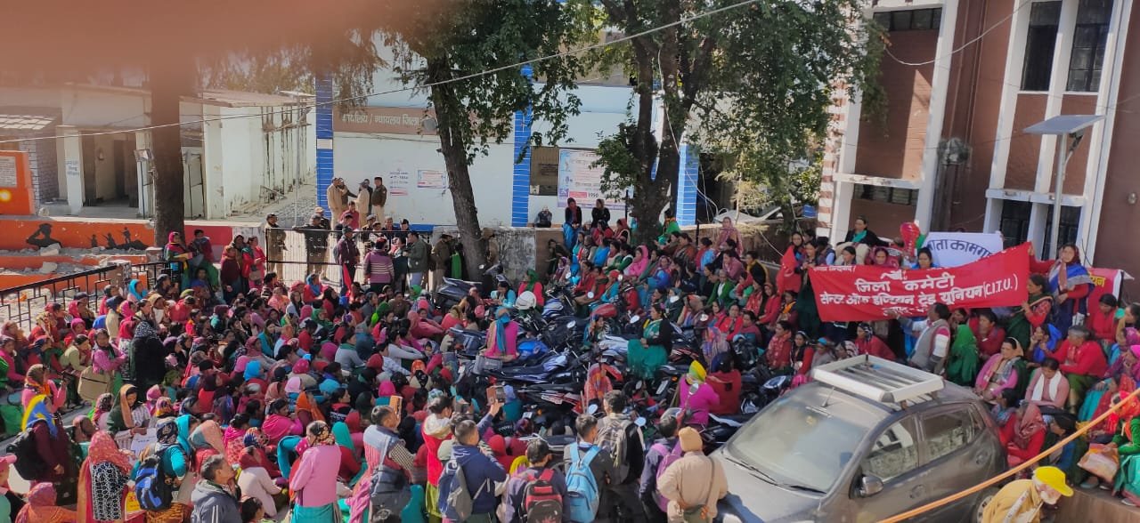 गोपेश्वर (चमोली)। संयुक्त किसान मोर्चा और संयुक्त ट्रेड यूनियनों के आह्वान पर शुक्रवार को भोजन माता, आशा, आंगनबाडी कार्यकत्रियों और किसानों ने अपनी मांगों को लेकर जुलूस प्रदर्शन कर जिलाधिकारी चमोली के कार्यालय परिसर पर धरना देते हुए राष्ट्रपति और मुख्यमंत्री को ज्ञापन भेजा।
