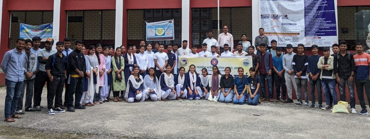 स्वयं सेवियों को संबोधित करते हुए प्राचार्य प्रो. मनोज उनियाल ने कहा कि मेरी माटी मेटा देश एक राष्ट्रीय कार्यक्रम है इसके तहत भारत देश की रक्षा में अपने प्राण न्यौछावर करने वाले शहीदों का भावपूर्ण स्मरण करना है और उनके आश्रितों को सम्मानित करना है। वरिष्ठ कार्यक्रम अधिकारी डॉ. वंदना लोहनी ने मेरी माटी मेरा देश अभियान के विभिन्न आयामों पर प्रकाश डालते हुए कहा कि प्रत्येक स्वयं सेवी को अपने गांव में रहने वाले सैनिकों की जानकारी एकत्रित करनी है। कार्यक्रम में एंटी ड्रग सेल के नोडल अधिकारी डॉ. मनीष मिश्रा ने कहा कि प्रत्येक स्वयं सेवी को ड्रग्स के नशे से दूर रहकर अन्य को भी जागरूक करना चाहिए। उन्होंने साथ ही साथ मतदाता जागरूकता के संबंध में भी स्वयंसेवियों को अवगत कराया। कार्यक्रम के पश्चात स्वयं सेवियों ने महाविद्यालय के परिसर में स्वच्छता अभियान चलाया। इस अवसर पर डॉ. रूपेश कुमार, कार्यक्रम अधिकारी डॉ. दर्शन सिंह नेगी आदि मौजूद थे।