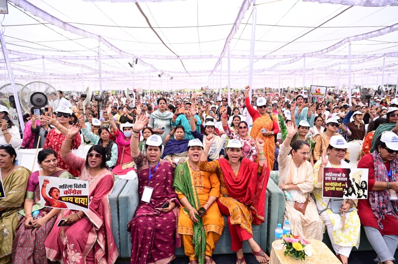 मुख्यमंत्री ने कहा प्रधानमंत्री द्वारा देश की आधी आबादी को उसका हक दिलाने के प्रयास को लोकसभा में विपक्ष ने विफल करके देश के साथ महा पाप किया है।मुख्यमंत्री ने कहा प्रधानमंत्री नरेंद्र मोदी ने मातृशक्ति को नए भारत के निर्माण का आधार माना है। महिलाओं को सशक्त, सक्षम और आत्मनिर्भर बनाने की दिशा में कई ऐतिहासिक कार्य किए गए हैं। बेटी बचाओं-बेटी पढ़ाओं अभियान, उज्ज्वला योजना, एवं जन धन योजना द्वारा करोड़ों बहनों को बैंकिंग प्रणाली से जोड़ा, स्टार्टअप योजना के माध्यम से लाखों महिलाओं को सशक्त बनाने, लखपति दीदी योजना द्वारा महिलाओं को आत्मनिर्भर बनाने और ट्रिपल तलाक जैसी कुप्रथा को समाप्त कर महिलाओं को आगे बढ़ने का काम किया गया है। मुख्यमंत्री ने कहा प्रधानमंत्री की प्रेरणा से देश के प्रत्येक क्षेत्र में महिलाएँ आगे आ रही हैं। आदिवासी समाज की बेटी, देश के सर्वोच्च संवैधानिक पद तक पहुंची हैं। केंद्रिय मंत्री निर्मला सीतारमण को वित्त मंत्रालय जैसा महत्वपूर्ण मंत्रालय दिया गया है।