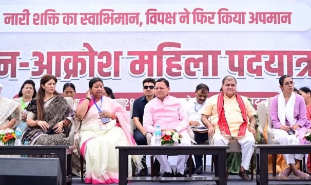 मुख्यमंत्री पुष्कर सिंह धामी ने कहा कि प्रधानमंत्री नरेंद्र मोदी के नेतृत्व में मातृशक्ति को देश की लोकतांत्रिक व्यवस्था में उनका अधिकार दिलाने के लिए नारी शक्ति वंदन अधिनियम लाया गया था। परंतु लोकसभा में संख्या बल के कारण बिल पारित नहीं हो पाया। उन्होंने कहा विपक्ष ने षड्यंत्र करके नारी शक्ति का अधिकार छिनने का काम किया है। उन्होंने कहा देश की नारी, अन्याय के विरुद्ध अवश्य आवाज उठाएगी क्योंकि अब नारी अपने अधिकारों के प्रति सजग हो चुकी है।