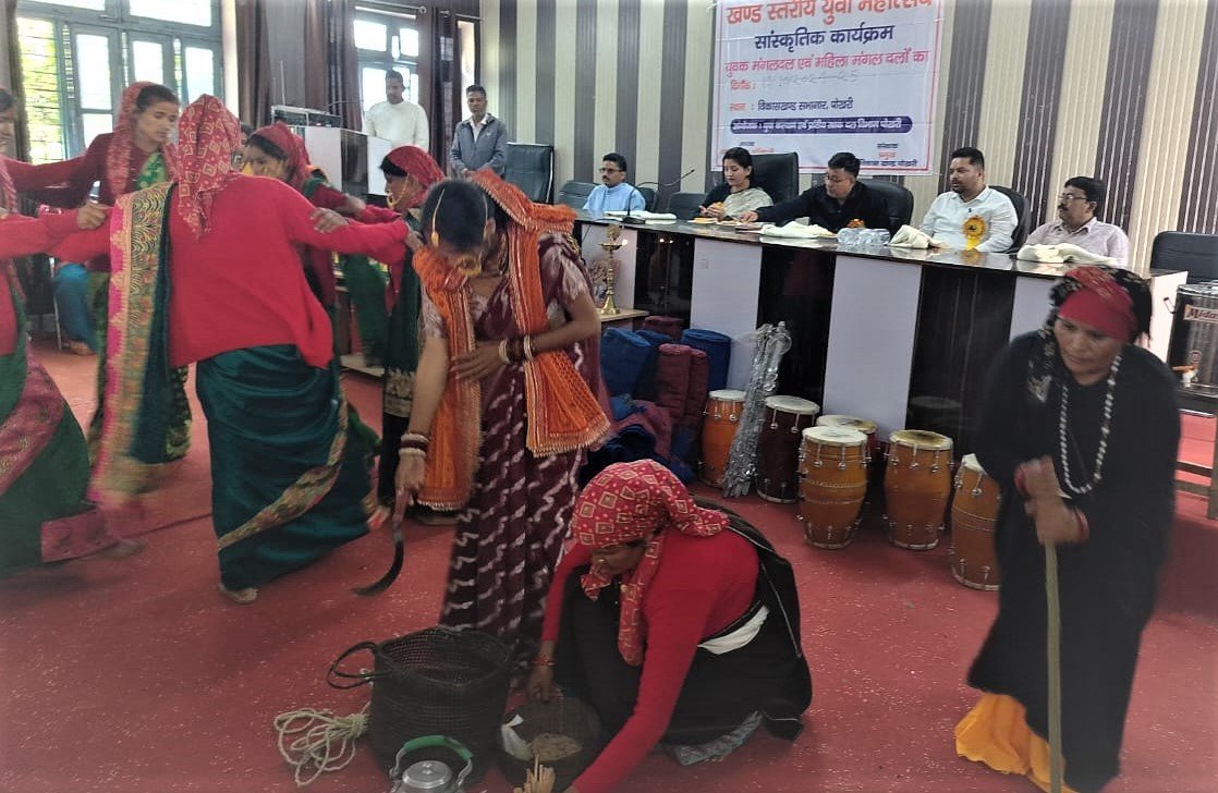 सांस्कृतिक कार्यक्रम में महिलाओं ने नन्दा जागर, नंदा राजजात सहित तमाम मनमोहक झांकियां की प्रस्तुति दी गई। कार्यक्रम के दौरान दस ग्राम पंचायतों के महिला मंगल दलों को सांस्कृतिक कार्यक्रम की सामग्री भी वितरित की गई। सांस्कृतिक कार्यक्रमों में प्रतिभाग करने वाले महिला मंगल दलों और युवक मंगल दलों को मुख्य अतिथि और खंड विकास अधिकारी राजेंद्र बिष्ट ने स्मृति चिन्ह देकर सम्मानित किया गया। इस अवसर परसहायक खंड विकास अधिकारी कमल आर्य, मयंक कुमेड़ी, संदीप सिंह, उर्मिला नेगी आदि मौजूद थे।